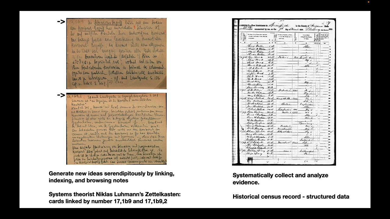 Notetaking is an essential aspect of research and writing. Historians in particular take notes on a grand scale: they process hundreds or thousands of primary sources when writing a book. You may start with index cards and a corkboard. But once you get into a major historical project you may be overwhelmed with sources and connections, and a corkboard will not be enough. Digital tools become crucial at that stage.