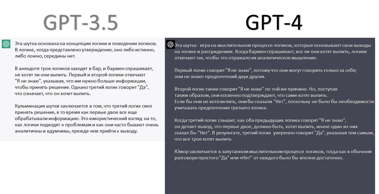 С.Карелов в своих каналах опубликовал любопытное размышление на тему превосходства GPT-4 над хуманами. Он привел примеры ответов GPT-3.5 и GPT-4, и сделал несколько выводов на основе этих ответов, а также сформулировал ряд ошибочных рассуждений.