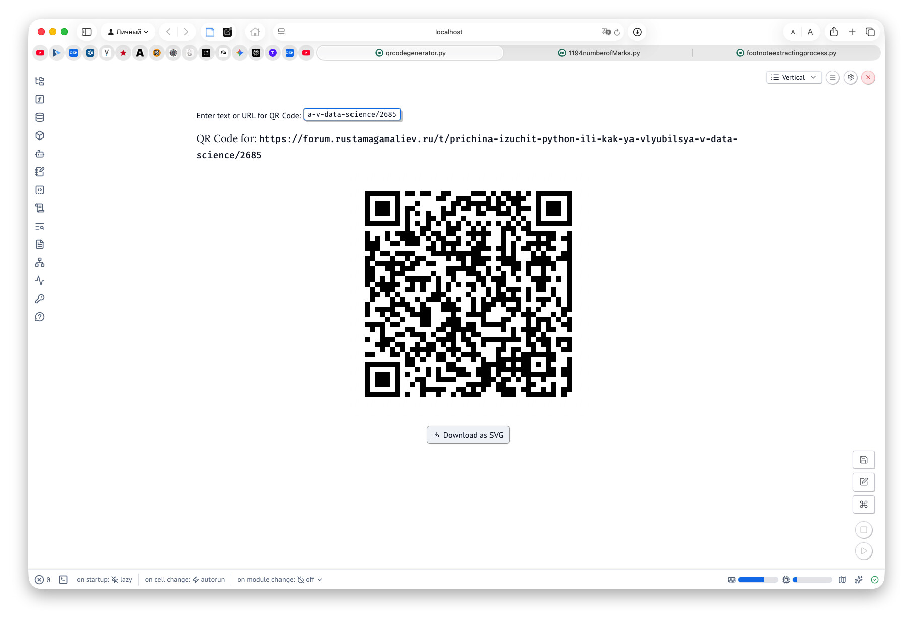 У меня уже как год «свербит» желание освоить пайтон. Вначале это было неформализованное желание, просто на уровне «хотелки», потом я впервые попробовал навайбкодить себе парсер, который выгружает кое-какие данные с одного популярного книжного сервиса. У меня получилось, но дальше парсинга и эпизодических попыток что-то навайбкодить я не заходил. Не потому, что было неинтересно (как раз наоборот, очень интересно), а потому, что практической пользы для своей работы как учителя, исследователя и писателя я не видел.